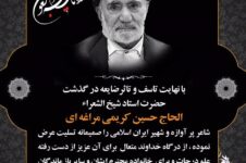 با نهایت تاسف و تاثر ضایعه درگذشت حضرت استاد شیخ الشعراء ” الحاج حسین کریمی مراغه ای ” شاعر پر آوازه و شهیر ایران اسلامی را صمیمانه تسلیت عرض مینمائیم....