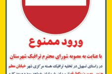 اعمال محدودیت ترافیکی در خیابان معلم جنوبی براساس مصوبه شورای ترافیک مراغه در آستانه بازگشایی مدارس و به دلیل بروز ترافیک سنگین به ویژه در غالب ساعات شبانه روز و...